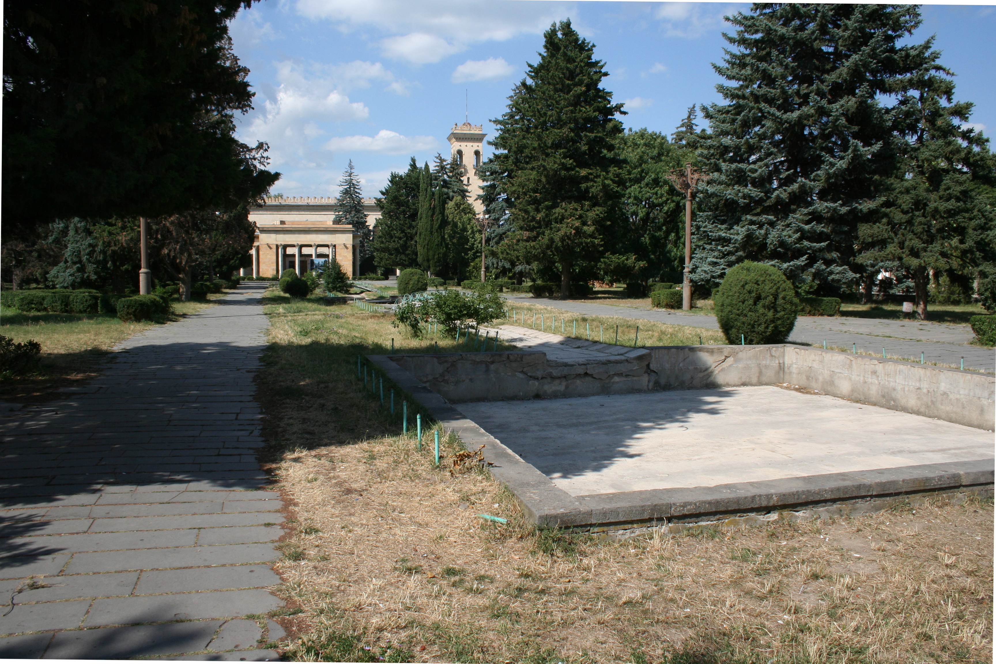 In front of Stalin’s childhood home is an awkward abandoned park. We walked through it with the assumption that it had once been, and had since fallen into disuse. Further digging has revealed something of the opposite to be true. There is a long concrete trough interrupted by square pools. Each empty of water, and slowly falling into itself. There are park benches. Each broken in multiple places, and often splashed with graffiti. The grass was dead and trampled into the ground. The bushes, only barely kept. In 2010, one of the few remaining statues of Stalin was removed in the dead of night from in front of Gori City Hall to be replaced by a monument to the victims of the 2008 violence. The removed statue was meant to end up just down the road at the Stalin Museum. Two years later, this derelict park and a hole in the ground topped by an artist’s rendering are all there is to show for this new old attraction. A part of me hopes that the park doesn’t change too much from its current state. It has the same allure as the aging train car, and seems to hold in it some truth.
