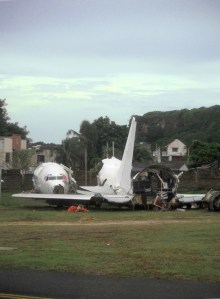 After boarding the Czech built Let-410 on the tarmac back at the airport, the woman who had been working the check in desk and later gate area, boarded the aircraft with a big smile and gave the safety demonstration. I know zero Spanish, and hardly a word of any related romance language, so I interpret to have gone something like this. “Welcome aboard. Stay out of the cockpit please; it is not big enough for you. There is a lot of water between here and there so if you need a life jacket, they are over there. Have a wonderful time.” If nothing else, the length is accurate. I mention stay out of the cockpit, as there was only a small panel in the aisle that acted as a pseudo partition between it and us. She then exited the aircraft, closed the door, put on her metaphorical ramp worker hat, and waved us on our way with obligatory orange sticks. We taxied back past the crashed Aries and took off over Fisherman’s Place.