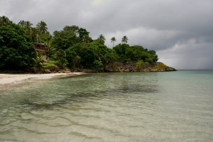 On our last night on the island, a rainstorm started to form on the horizon off the coast. Slowly it crept closer, darkening the sky but brining out the vibrant colours in the water. The rain began; followed by roaring wind, lightning, and thunder. Pools started to form in the yard and on the beach. A small stream that flowed into the sea from the inland forests grew and grew, carrying coconuts and debris out into the water. The murky torrent mushroomed out, turning the nice clear water into a chocolaty mess. First near the shore, then spreading to the horizon. By the time the rain ended, our clear blue paradise was a brown swampy mess. Though my description of the aftermath is less than relaxing, it cooled the hot air and was rather welcome.
