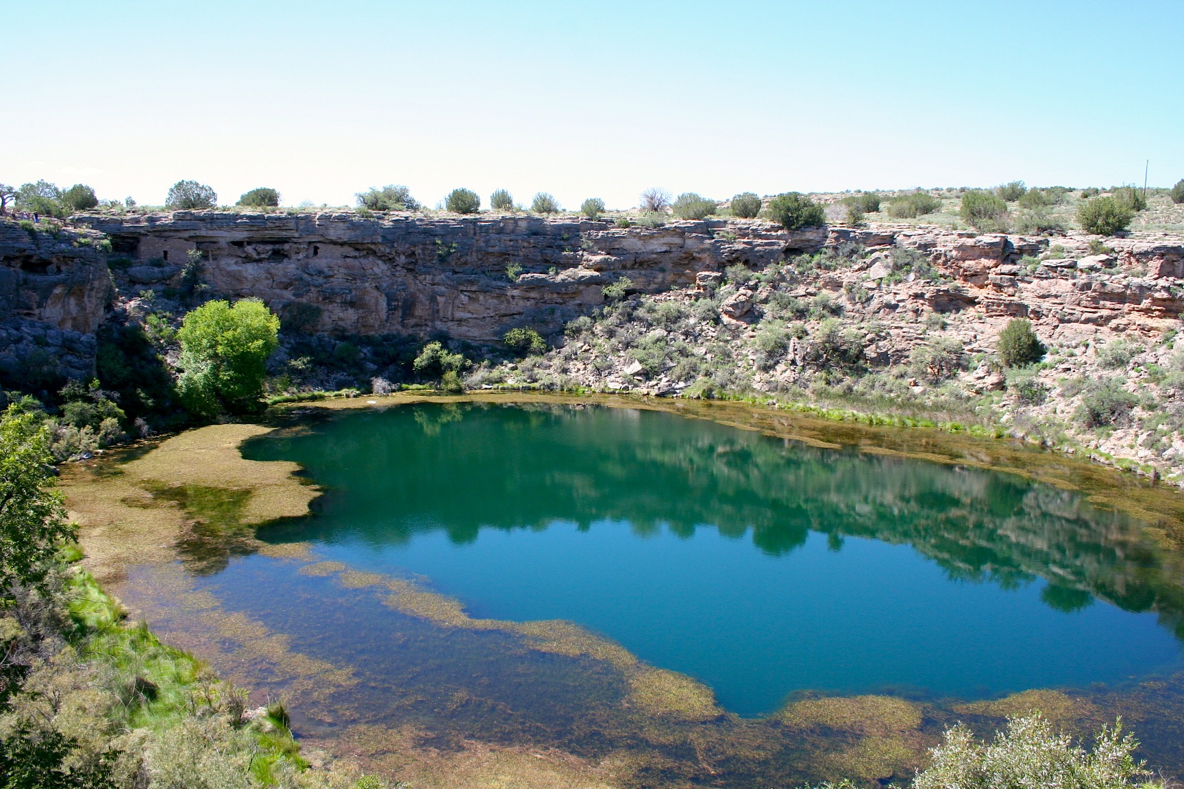 Montezuma’s Well is not a well-known place. No historic battle took place at it, no one famous drowned in it, it isn’t the largest pyramid in the country, nor is it really of any note to the general public. Frankly, that is a part of what I love it so much. The well is a large limestone sinkhole that stretches down between fifty and a hundred feet to its bottom. Two natural vents of water pump in a million and a half gallons of water per day, keeping the well at a relatively stable level even in droughts. Along the inside rim of the well are small homes like those at Walnut Canyon, built around preexisting walls and overhangs.